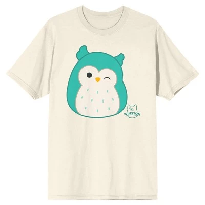 Have a hootin’ good time with your favorite Squishmallows tee. The shirt features an image of Winston the Owl winking while green letters spell out his name. The tee comes in a natural short sleeve crew neck. Squishmallows fans will love this comfy cotton tee.