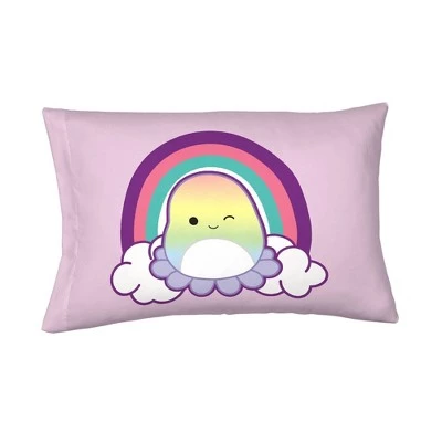 This complete sheet set includes a high-quality fitted sheet, flat sheet, and pillowcase(s) for a coordinated Squishmallow look. It’s crafted from soft microfiber with fun multicolored character artwork on the both the flat and fitted sheet as well as the pillowcase.